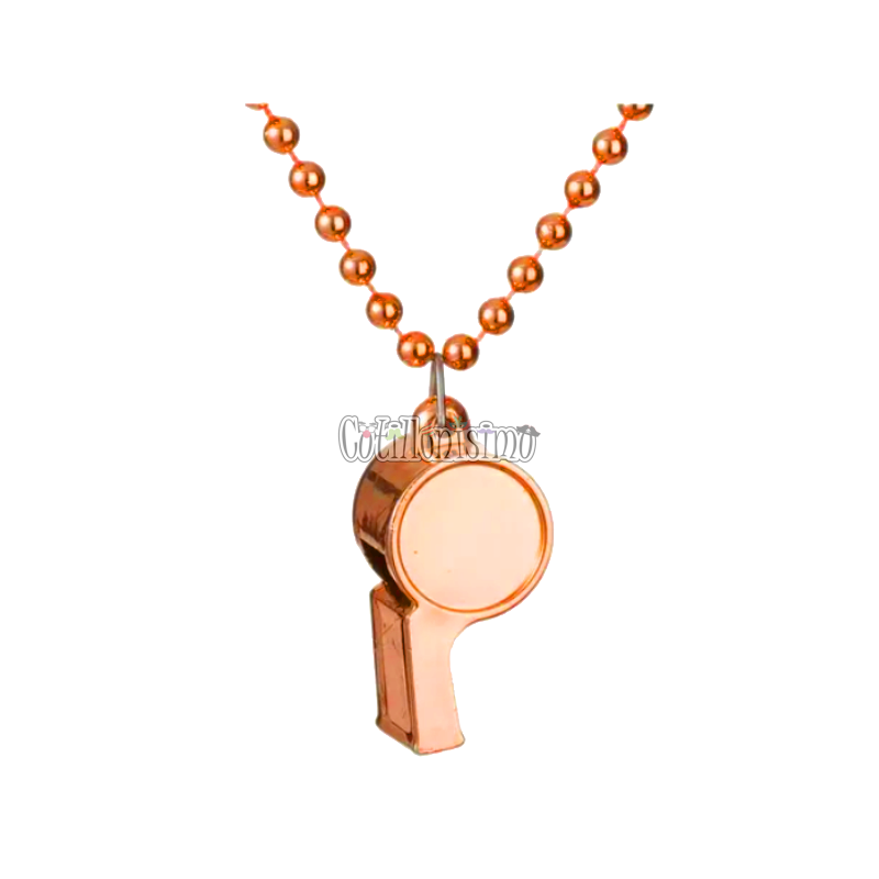 Collar con Cuentas y Silbato Color Naranja Metalizado x1u