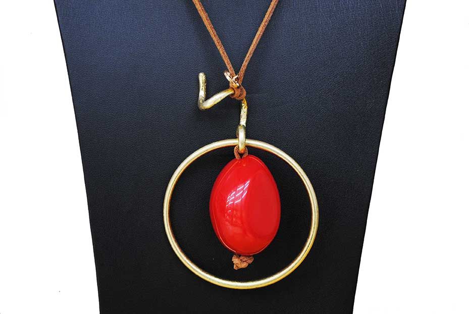 Collar metal y piedra roja