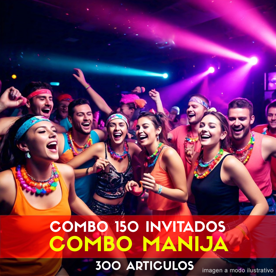 Combo Fluo Led para 150 Invitados (aproximadamente) con 300 artículos – Cantidades Variables – Versión Surtido Fiesta Luminoso LED Luces Combo Surtido