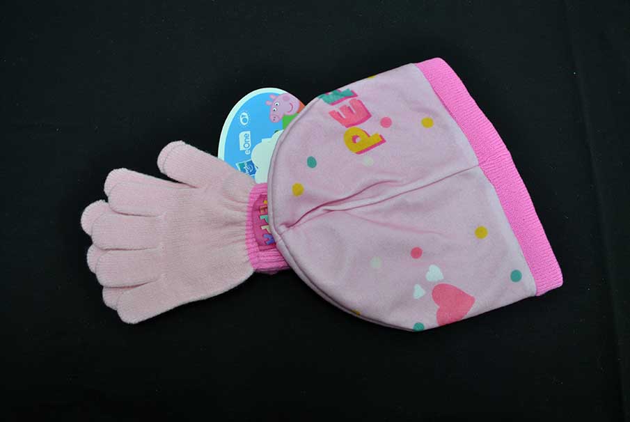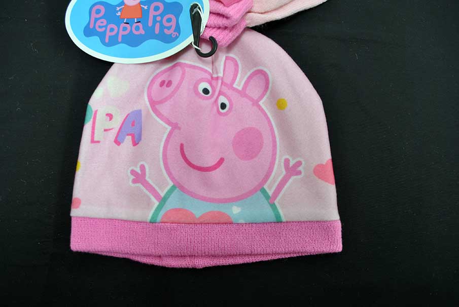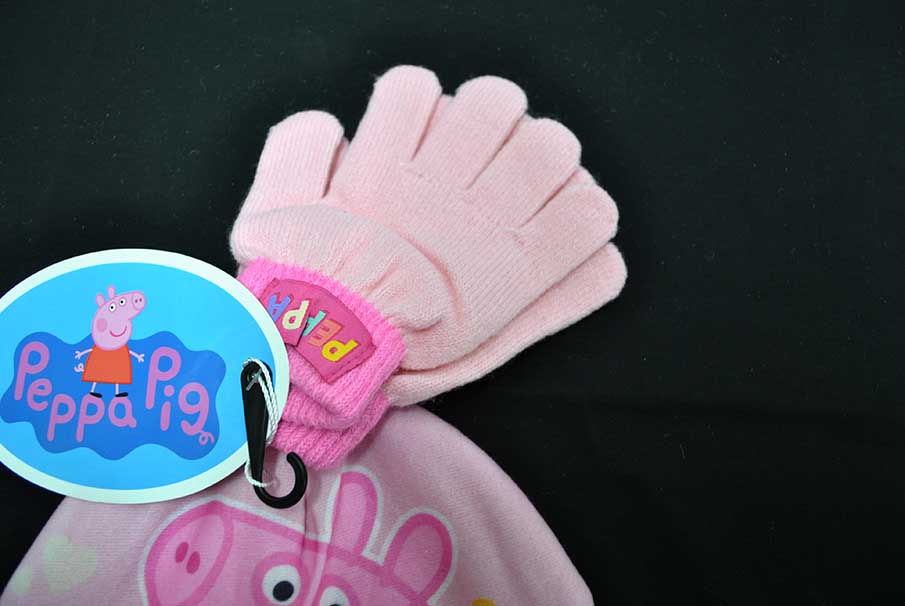 REF: 4285 – Bonito conjunto infantil. Se trata de un conjunto de niña compuesto por gorro y guantes de peppa pig. ¡Es perfecto, seguro que a la niña le encantará! 🙂