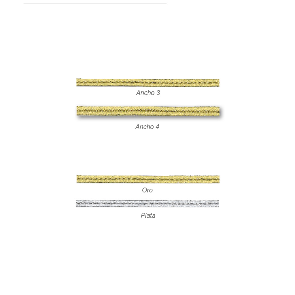 Cordón plano de 3 y 4 mm de anchos. Lleva una incisión central para
