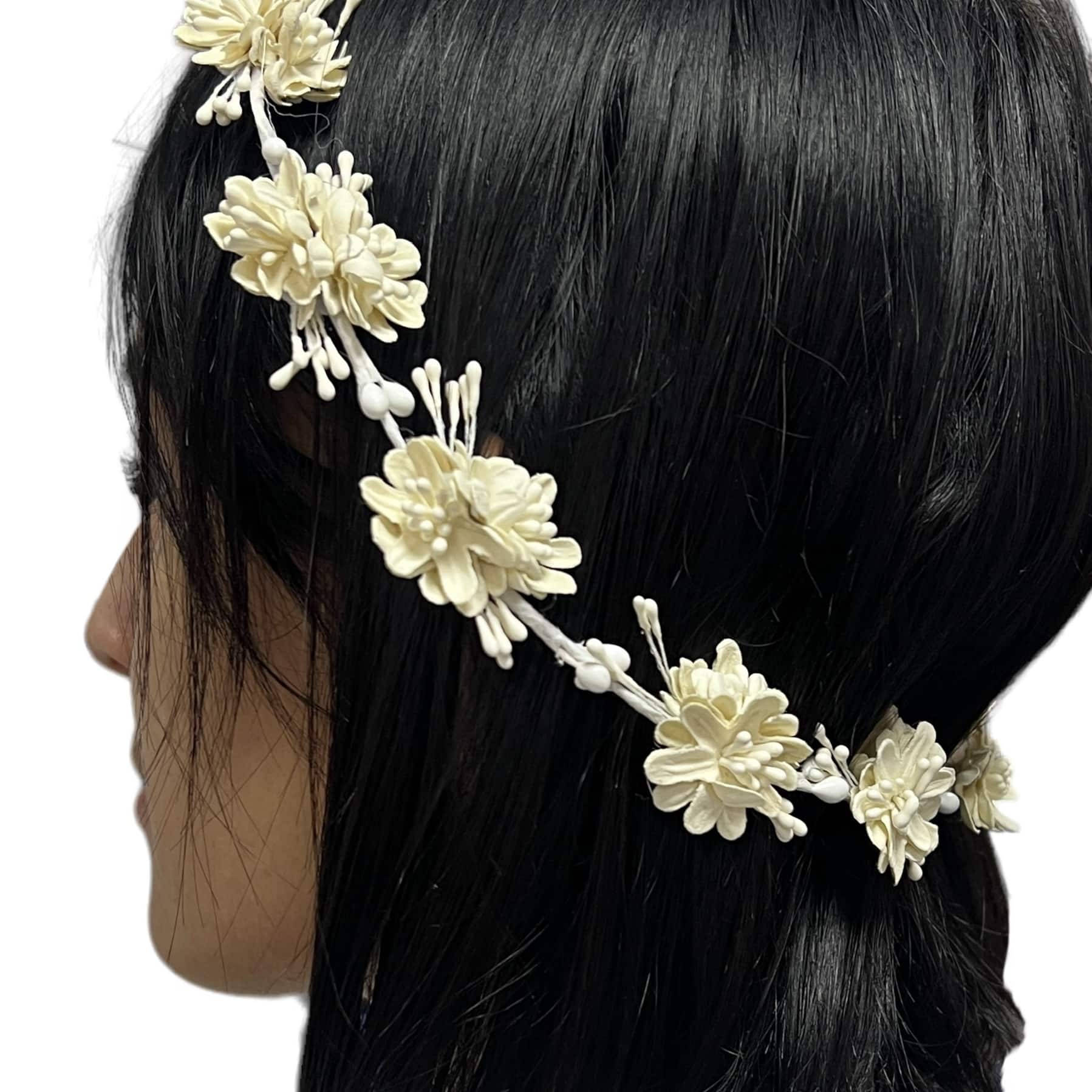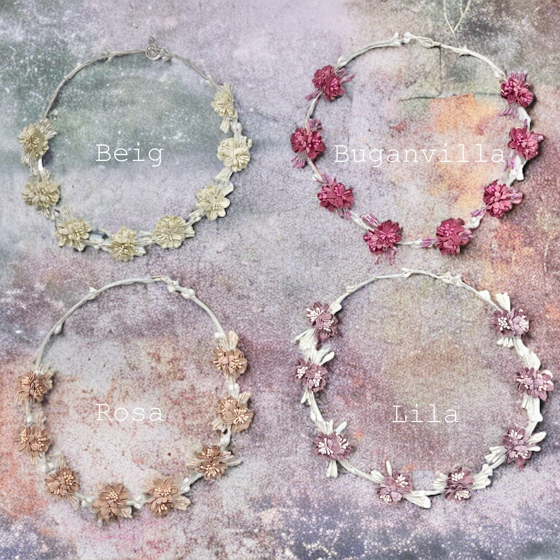 Corona completa realizada con alambre de pistilos y flores disponible en 4 colores.