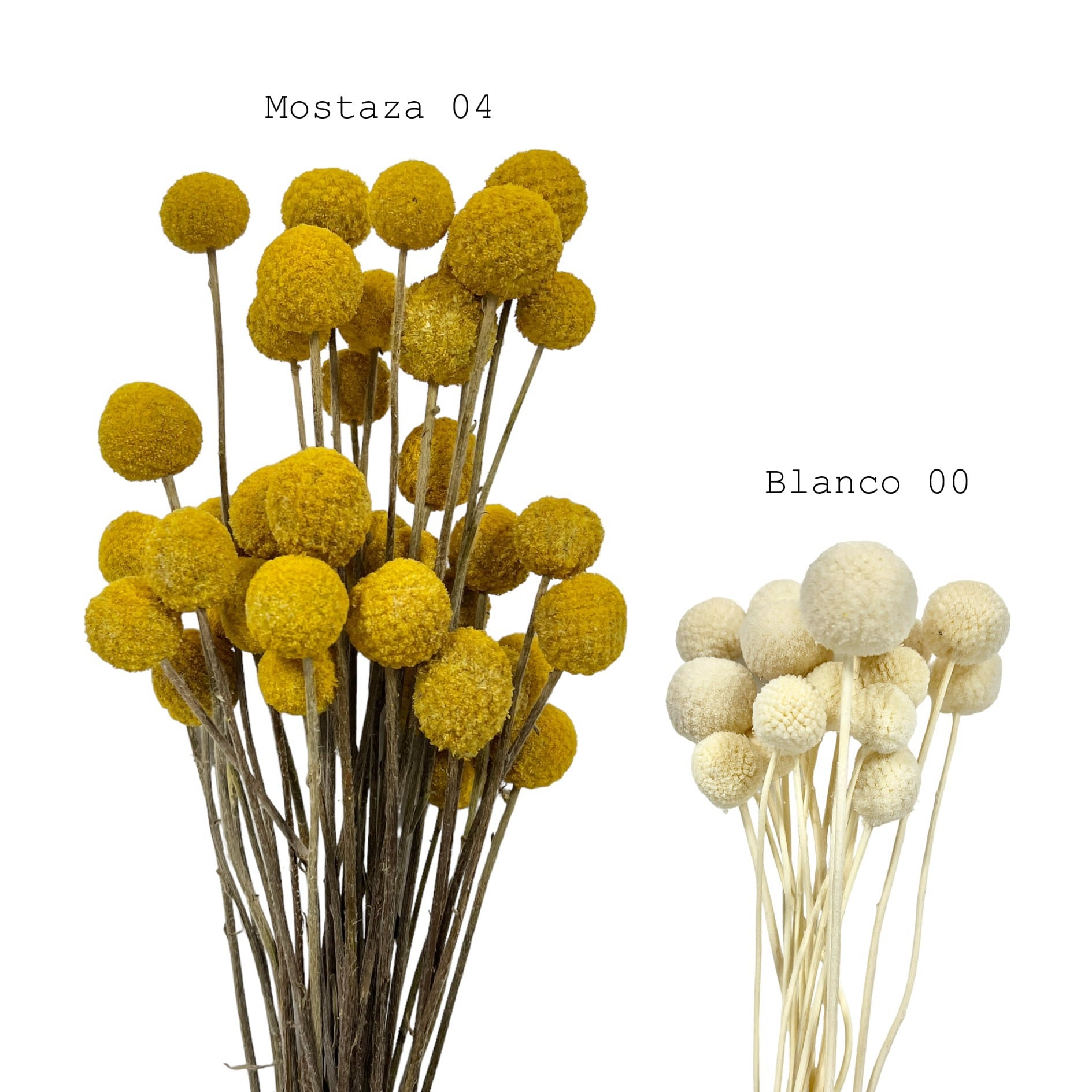 Las flores de Craspedia que han pasado por un proceso de preservación para mantener su belleza y frescura de forma duradera. Estas flores son sometidas a un tratamiento especial que implica la eliminación de la humedad y la saturación con una solución conservante. El resultado es una Craspedia que mantiene su forma, color y textura original sin marchitarse.