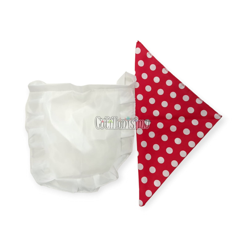 Medidas aproximadas: 27 cm x 82 cm (pañuelo) x 27 x 26 cm (delantal)