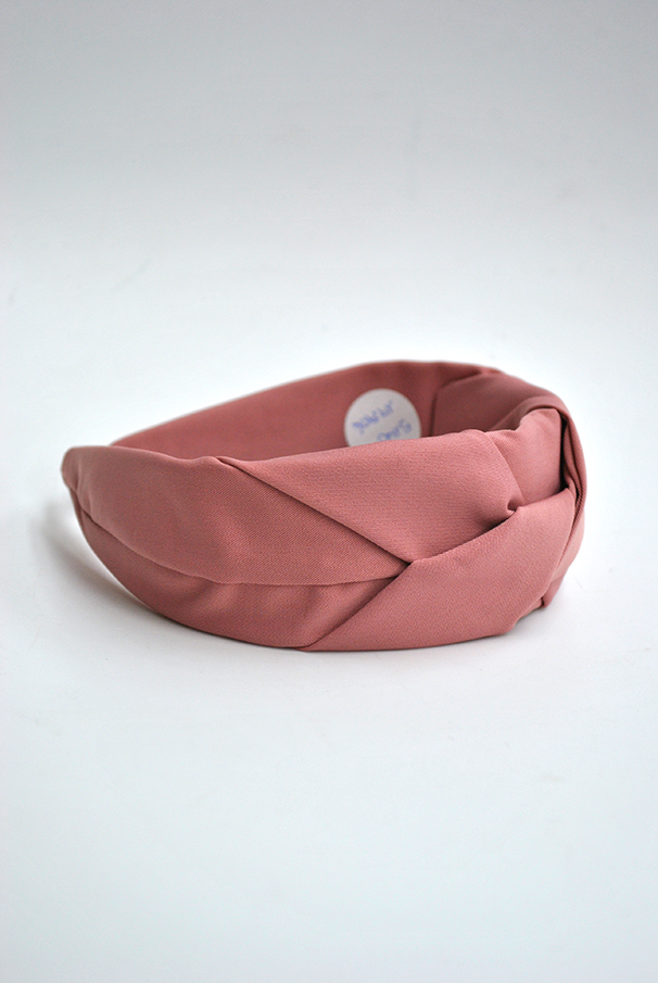 R03/5140 – Bonita diadema forrada en tela suave de color ROSA EMPOLVADO con detalle central de un nudo, diseño fino y elegante.