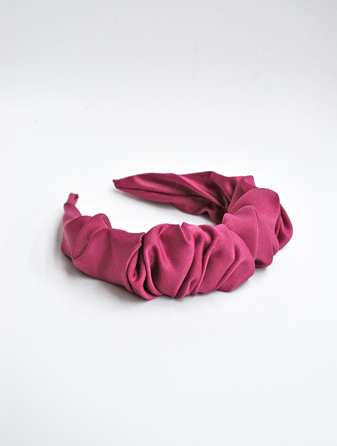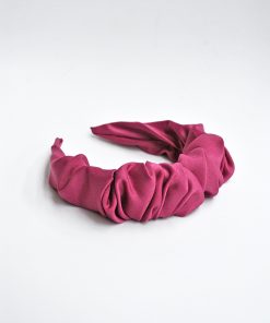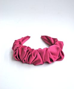 R03/5087 – Preciosa diadema rosa de fiesta o ideal para el día a día. Está forrada de tela fruncida y presenta el tacto muy suave y agradable.