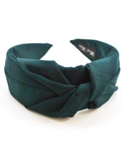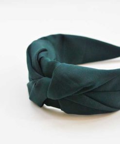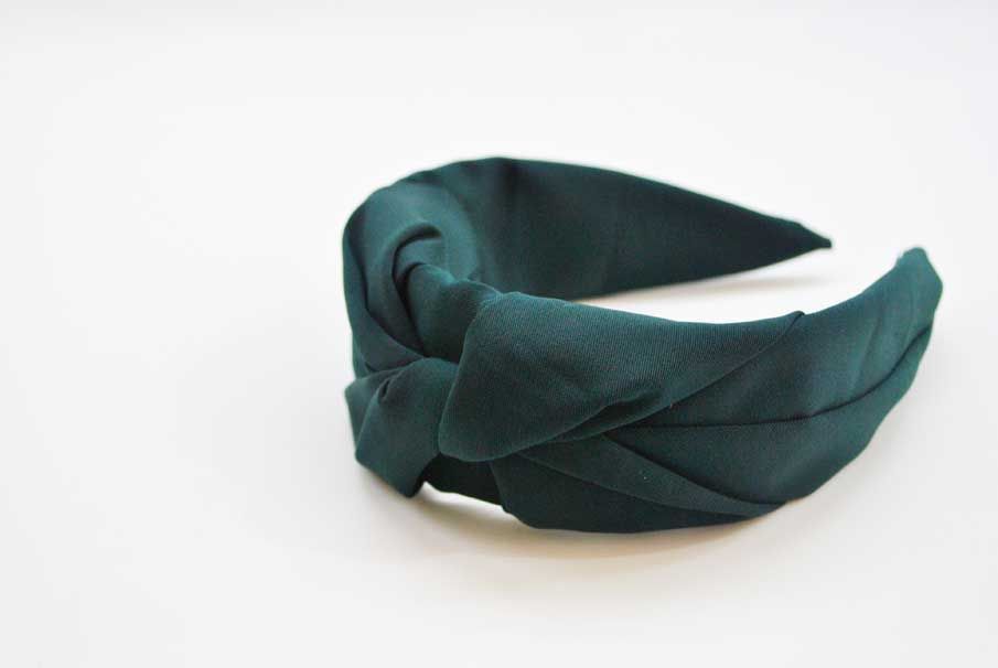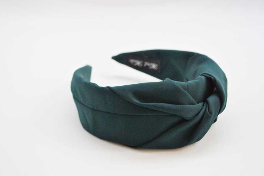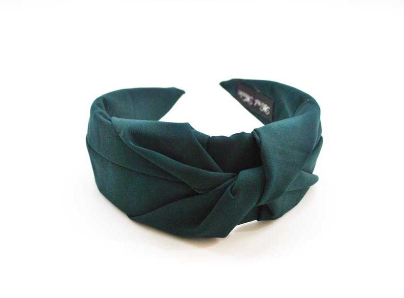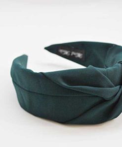 R03/5140 – Bonita diadema forrada en tela suave de color verde botella con detalle central de un nudo, diseño fino y elegante.