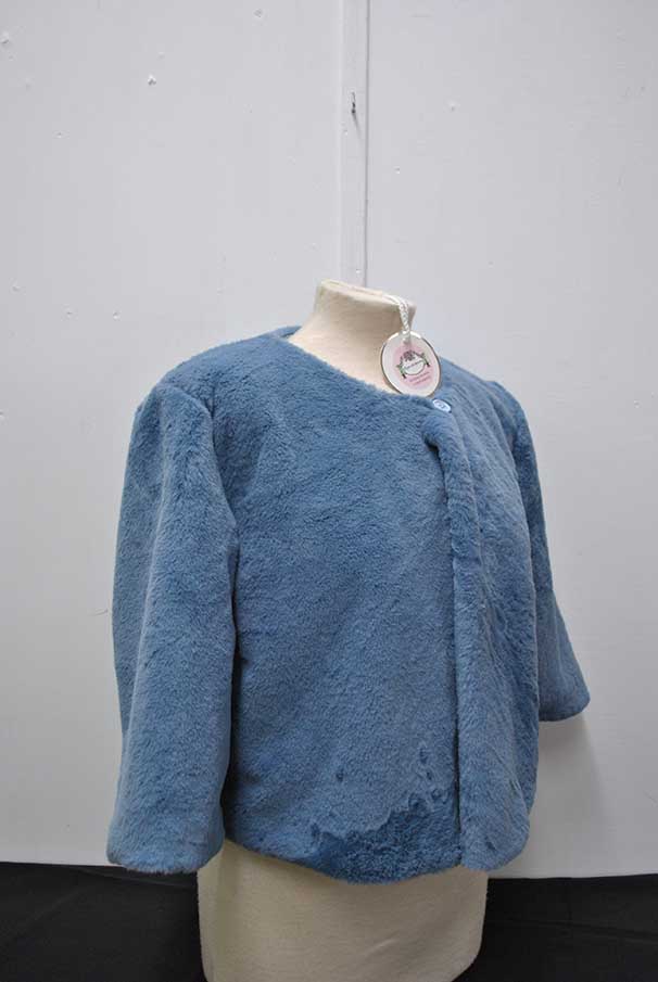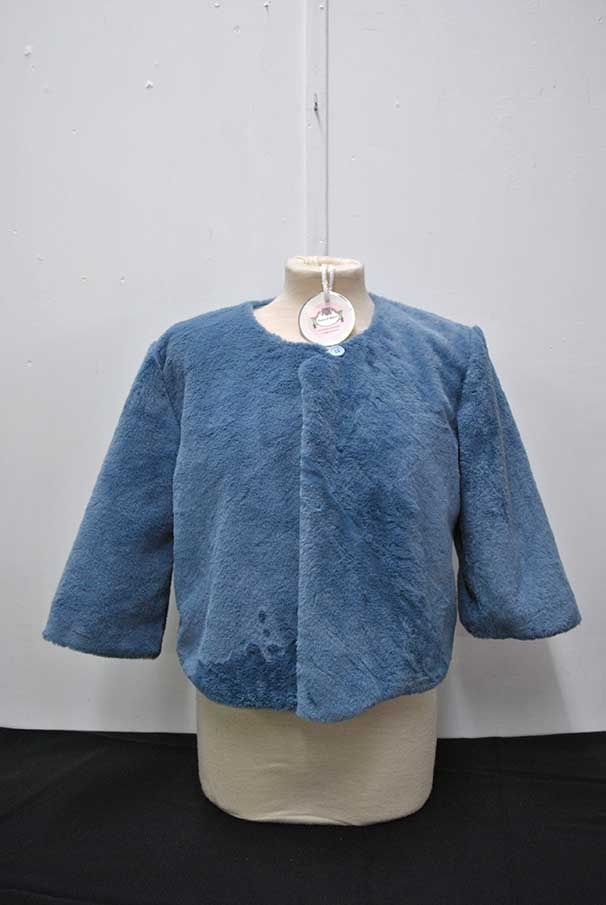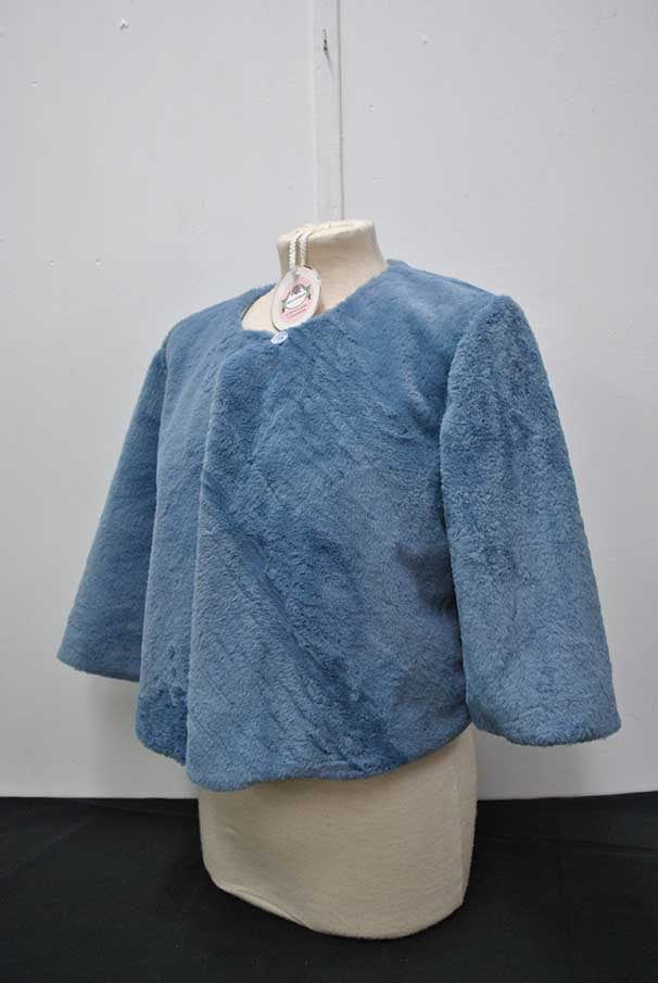 TPB195013245847 -Capa o estola de fiesta, ideal para bodas y eventos especiales, fabricada en un suave y agradable pelo sintético de color azul con escote redondo y un pequeño botón como broche. La estola consta del interior forrado, elegante, muy favorecedora y cómoda de llevar.