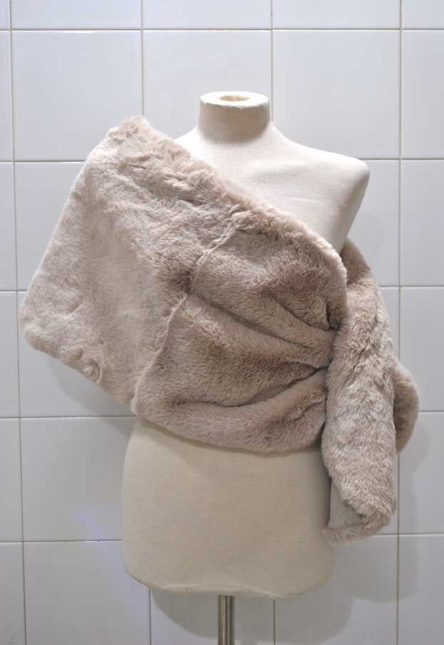 R02/4924 -Capa o estola de fiesta, ideal para bodas y eventos especiales, fabricada en pelo sintético de un precioso y llamativo color BEIGE. La estola consta del interior forrado, muy favorecedora y cómoda de llevar.