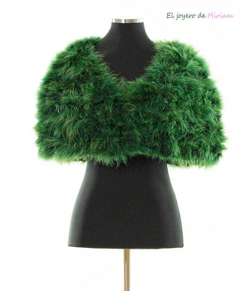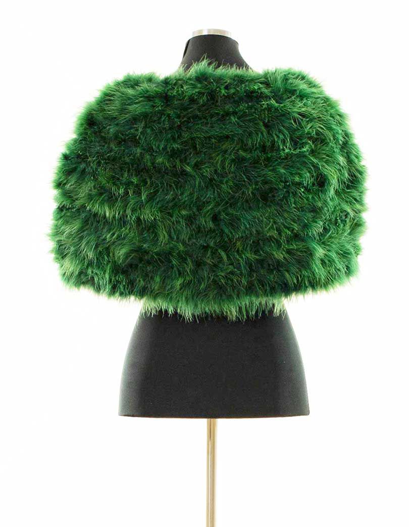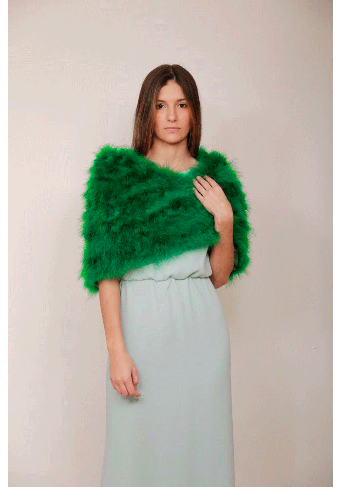 R03/5399 – Capa o estola de fiesta, ideal para bodas y eventos especiales, fabricada en pelo sintético de un precioso y llamativo color VERDE y escote de pico. La estola consta del interior forrado, muy favorecedora y cómoda de llevar. Además, dispone de dos pequeños broches para llevarla abrochada.
