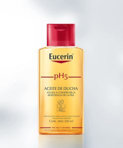 El Aceite de Ducha pH5 Eucerin de uso diario preserva las defensas naturales de la piel y previene su sequedad, incluso después de la ducha. Su fórmula contiene una formulación única de buffer citrato pH5 y surfactantes extra suaves que protegen las enzimas propias de la piel. La reposición intensiva de los lípidos deja la piel con una sensación nutrida y sedosa. Está probado en pieles secas y sensibles. Ideal para utilizarse en zonas afectadas por alergias.