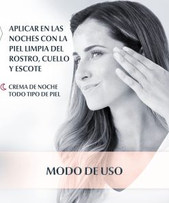 2) Aplicar Eucerin ANTI-PIGMENT Crema de noche sobre el rostro, cuello y escote, masajeando suavemente.