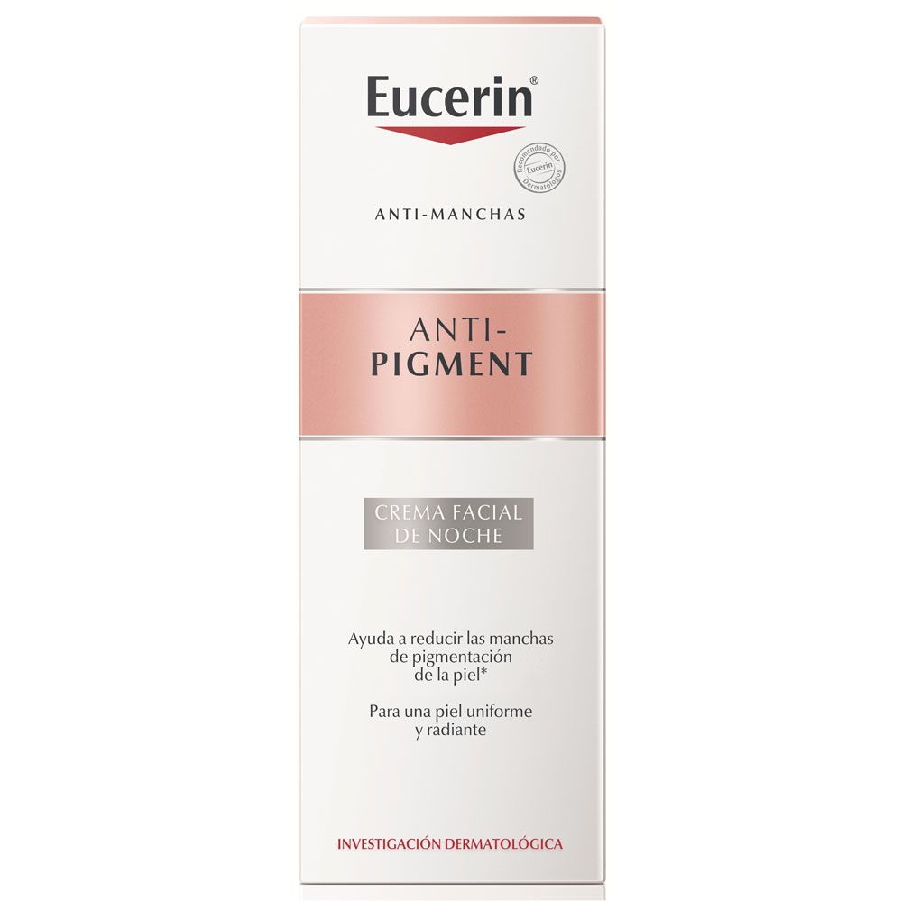 La Crema de Noche Eucerin ANTI-PIGMENT combina dos ingredientes: Thiamidol, que actúa en la causa principal de la hiperpigmentación al reducir la producción de melanina; y Dexpantenol, un activo conocido que favorece la regeneración de la piel durante la noche. Se ha probado clínica y dermatológicamente que este componente reduce las manchas y previene su reaparición. El uso de forma regular genera en la piel un efecto radiante y un tono homogéneo. Es apta para todo tipo de pieles.