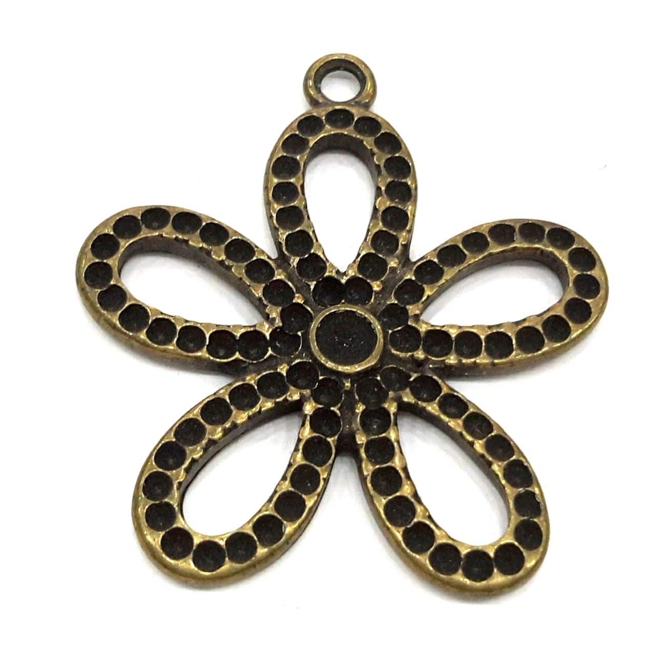 Flor metálica para adornar con símiles de swarovski del tamaño PP14 en color oro viejo, con un tamaño de 35mms anilla incluída. Fabricado en España.
