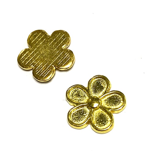 Flor plana de filigrana dorada con un diámetro de 12mm.