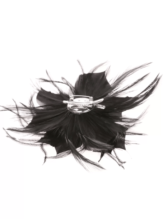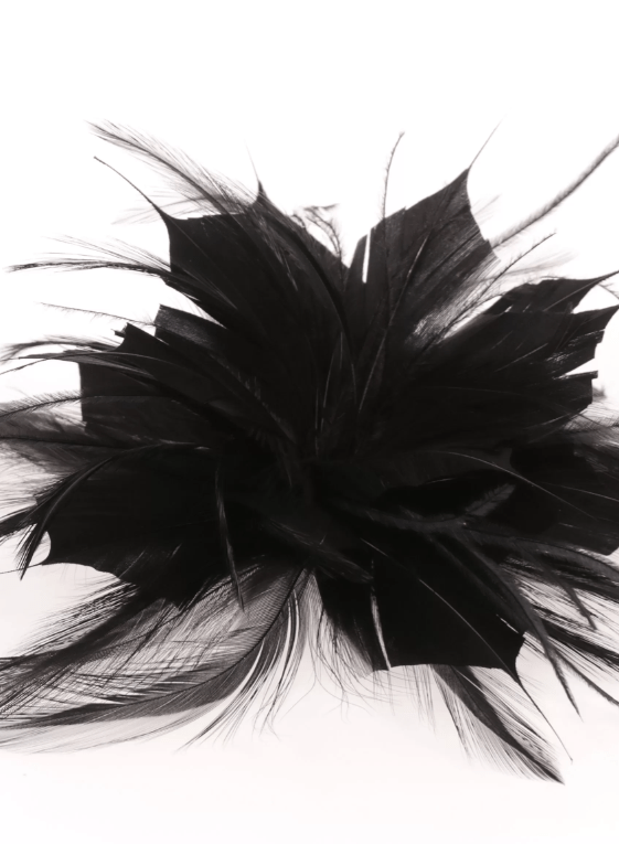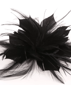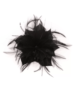 R02/4837 – Tocado bodas en color NEGRO, sencillo y elegante a la vez, con el diseño en forma de flor con los pétalos abiertos decorados con finas y delicadas plumitas vaporosas dando originalidad y movimiento a este precioso accesorio para su vestido de fiesta o noche. Además, lleva una pinza e imperdible para que pueda ponerlo tanto en el cabello como en una prenda de vestir a modo de broche.