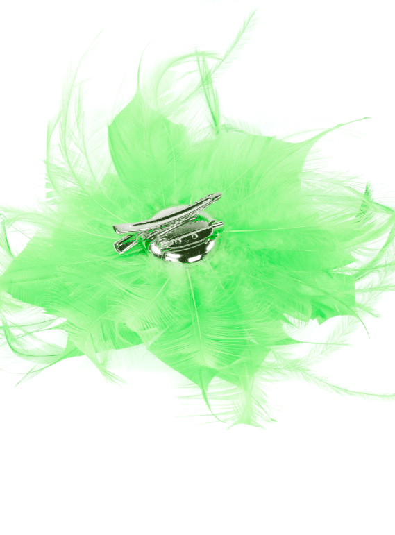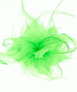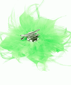 R03/5438 – Tocado pequeño de bodas en color VERDE PISTACHO, sencillo y elegante a la vez, con el diseño en forma de flor con los pétalos abiertos decorados con finas y delicadas plumitas vaporosas dando originalidad y movimiento a este precioso accesorio para su vestido de fiesta o noche. Además, lleva una pinza e imperdible para que pueda ponerlo tanto en el cabello como en una prenda de vestir a modo de broche.