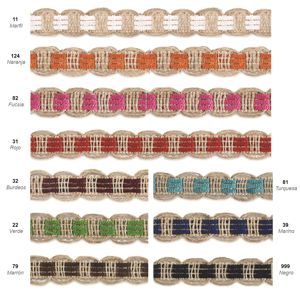 | Color | 11 / MARFIL, 124 / NARANJA, 22 / VERDE, 31 / ROJO, 32 / BURDEOS, 39 / MARINO, 79 / MARRÓN, 81 / TURQUESA, 82 / FUCSIA, 999 / NEGRO |