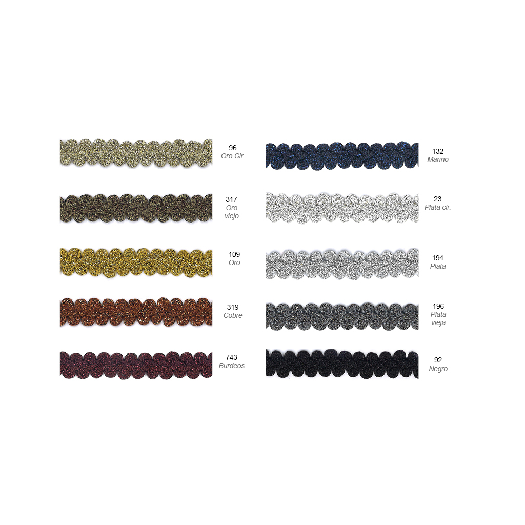 | Color | 109 / ORO, 132 / MARINO, 194 / PLATA, 196 / PLATA VIEJA, 23 / PLATA CLARA, 317 / ORO VIEJO, 319 / COBRE, 743 / BURDEOS, 92 / NEGRO, 96 / ORO CLARO |