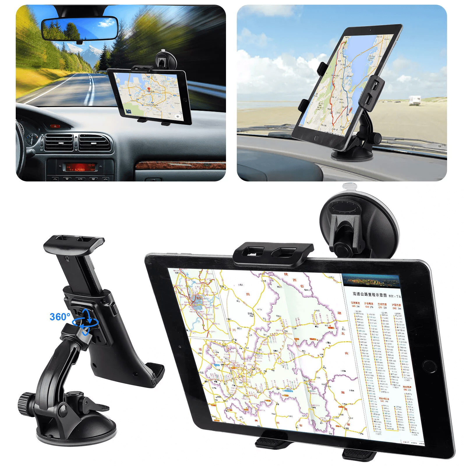 Con este soporte de Tablet podrás usar el navegador de tu Tablet desde el coche. De muy fácil instalación, para todo tipo de Tablets con pantallas entre 7 a 10,0. Con sistema de ventosa para usar en el parabrisas o cualquier superficie plana. Soporte de tablet para automóvil.