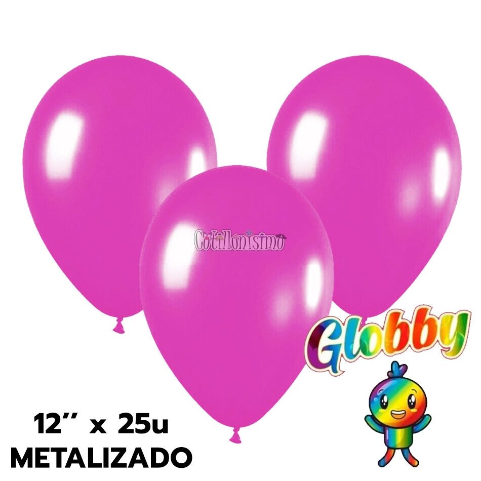Globo Globby Liso Metalizado Perlado 12 Pulgadas Rosa Chicle x25u