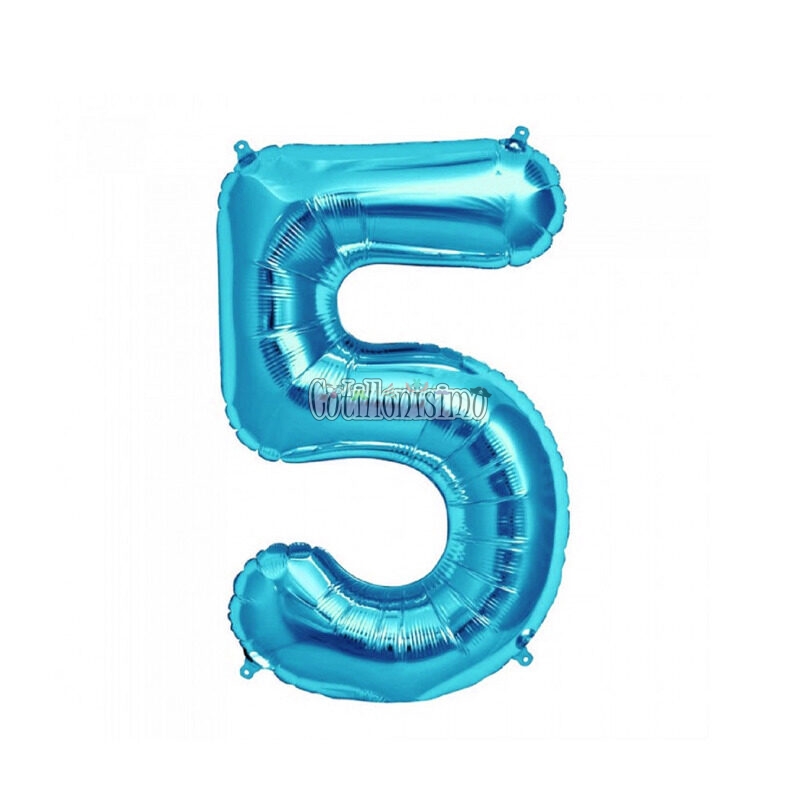 Globo Numero “5” Celeste Metalizado 40cm / 16” – 16 Pulgadas