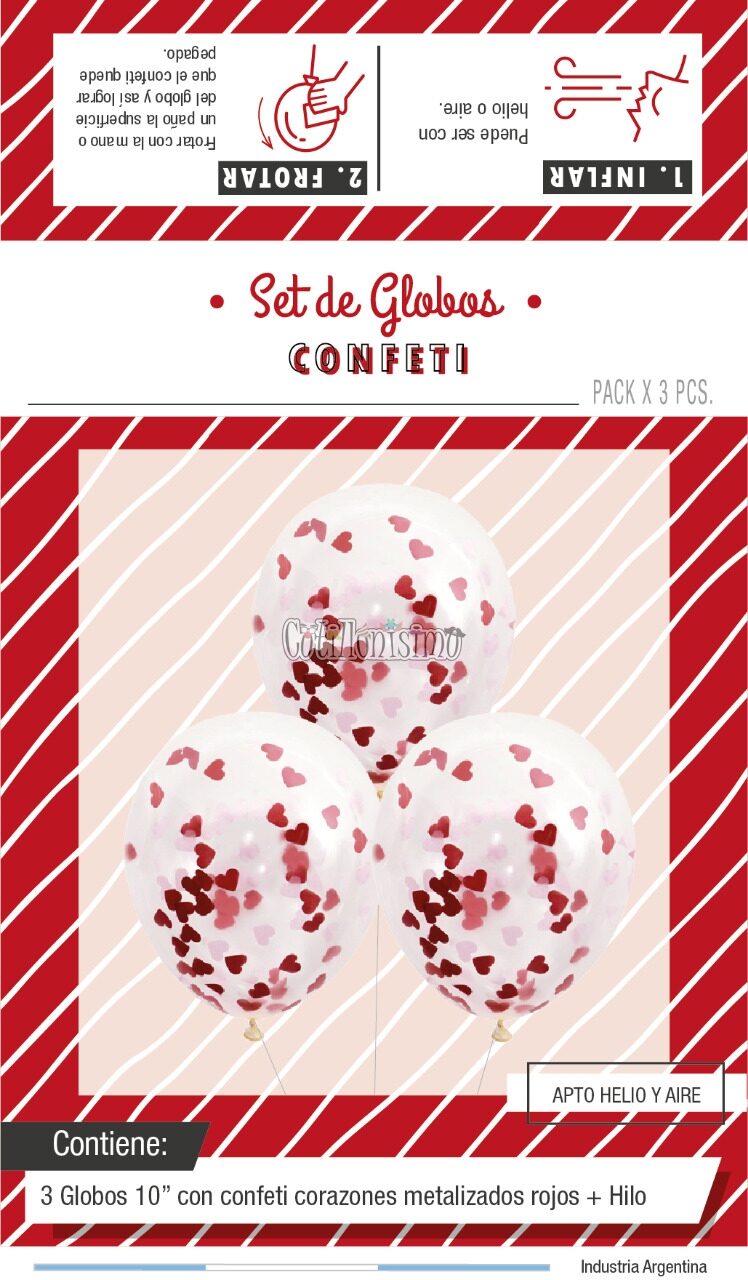 Globos con Confetti CORAZONES – Color ROJO x3 Unidades