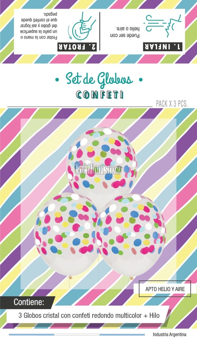 Contiene 3 Globos CRISTAL con Confetti en su interior.