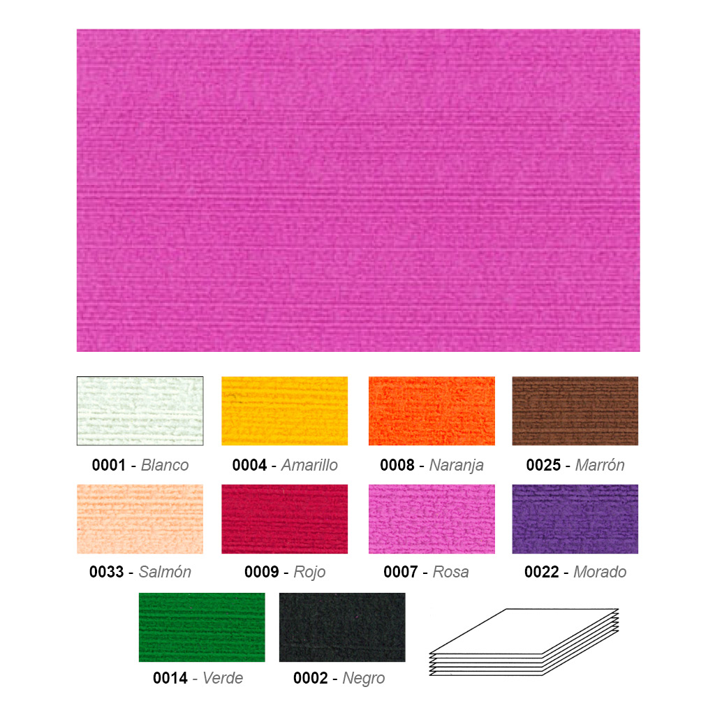 | Color | 001 / BLANCO, 002 / NEGRO, 004 / AMARILLO, 007 / FUCSIA, 008 / NARANJA, 009 / ROJO, 014 / VERDE BILLAR, 022 / MORADO, 025 / MARRÓN, 033 / SALMON |