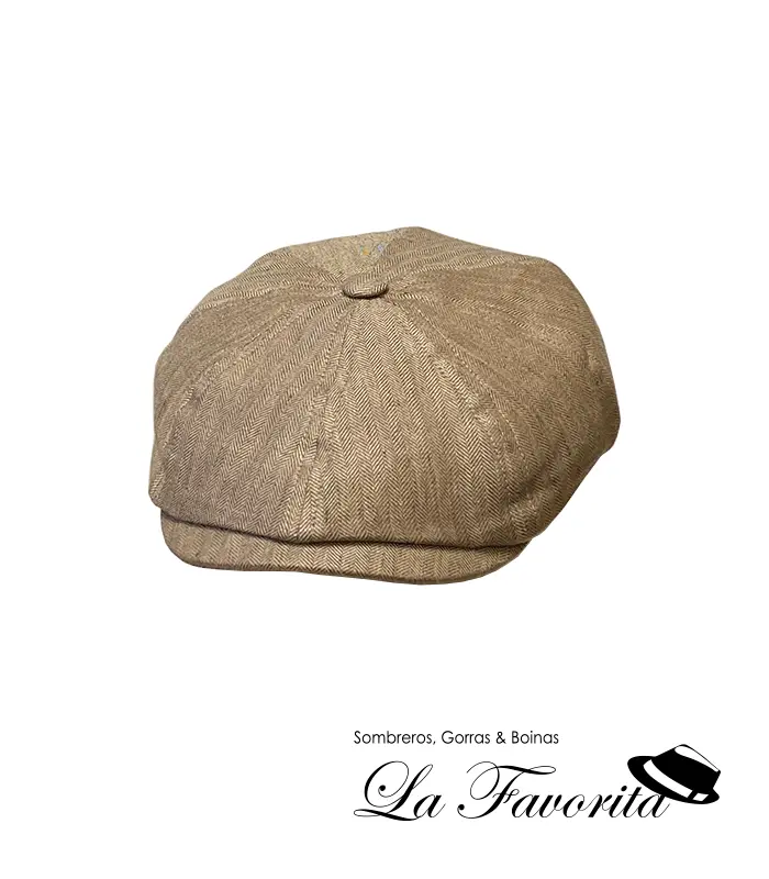 El modelo Kyoto mantiene la esencia de las gorras de 8 paneles con botón, un diseño icónico que ha trascendido generaciones. Su patrón de espiga fina en el tejido de lino añade un sutil toque de distinción, evocando la elegancia atemporal de la moda europea.