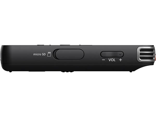El ICD-PX470 viene con 4 GB de memoria incorporada, lo que le brinda un tiempo máximo de grabación de hasta 59 h 35 min cuando graba en estéreo a MP3 a 128 kbps. Puede ampliar su capacidad de memoria con una tarjeta micro SD hasta 32 GB de memoria adicional, equivalente a más de 536 horas (Micro SD 32 GB, MP3 128 kbps) de tiempo de grabación.