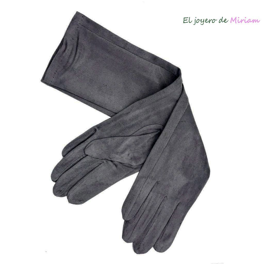 R21/4196 – Preciosos y estilosos guantes de fiesta, de unos 45cm desde la punta de los dedos hasta la parte final del guante. Están fabricados en antelina de color GRIS OSCURO, con un tacto suave muy agradable.