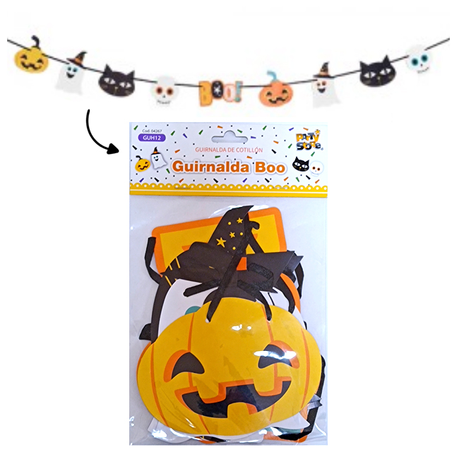 Guirnalda Banderin Halloween Boo Gato Calabaza Fantasma 250cm