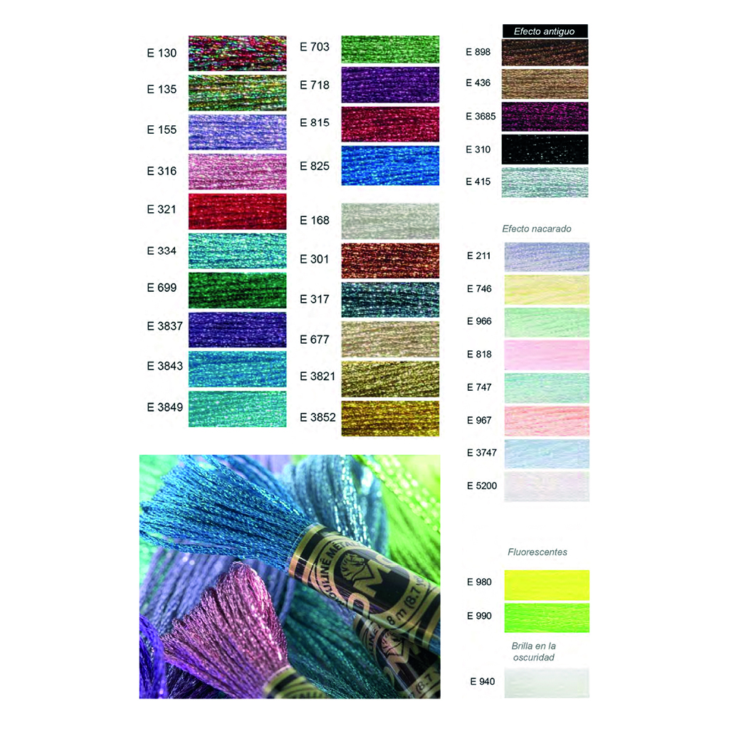 | Color | E130 /, E135 /, E155 /, E168 / 5283, E211 /, E301 / 5279, E310 /, E316 / 5288, E317 / 5287, E321 /, E334 /, E3685 /, E3747 /, E3821 / 5282, E3837 / 5289, E3843 / 5290, E3849 /, E3852 / 5284, E415 /, E436 /, E5200 / 5272, E677 /, E699 / 5269, E703 /, E718 /, E746 /, E747 /, E815 / 5270, E818 /, E825 /, E898 /, E940 /, E966 /, E967 /, E980 /, E990 / |
