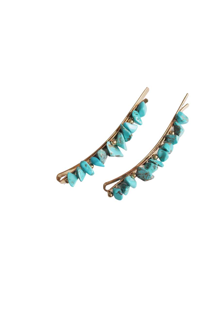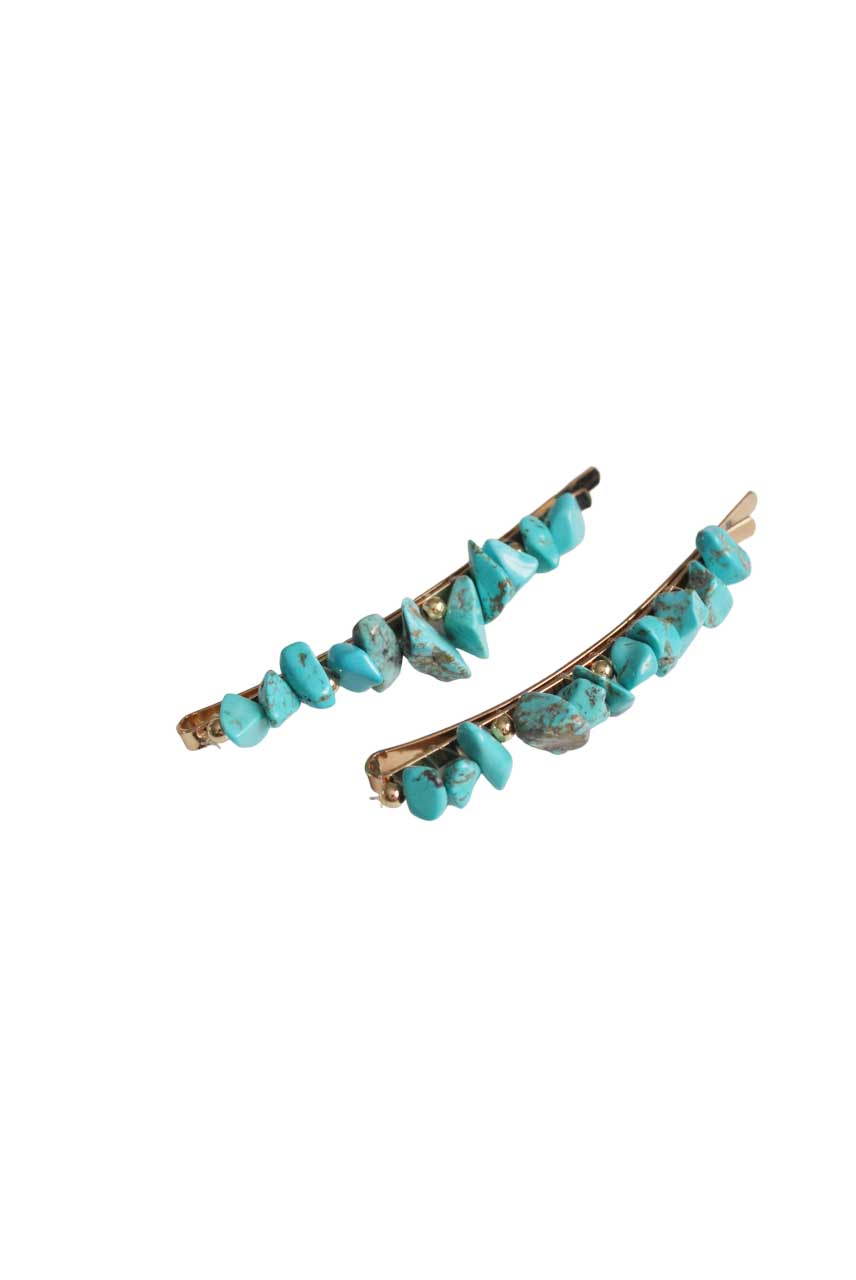 R04/5500 – Bonito pack de horquillas doradas decoradas con piedras de resina en color turquesa