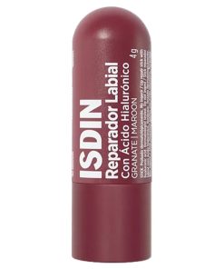 ISDIN Reparador Labial Stick GRANATE 4g es un bálsamo labial dermocosmético desarrollado para brindar hidratación profunda, protección contra agresiones externas y un toque de color suave para realzar la belleza natural de tus labios. Su fórmula avanzada contiene ácido hialurónico, un potente agente hidratante que ayuda a retener la humedad y regenerar la piel dañada de los labios, aliviando inmediatamente la sequedad, tirantez o irritación.