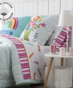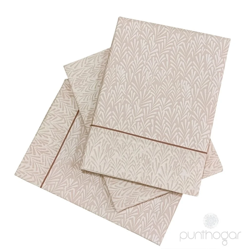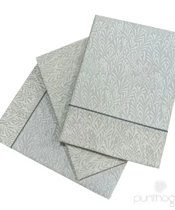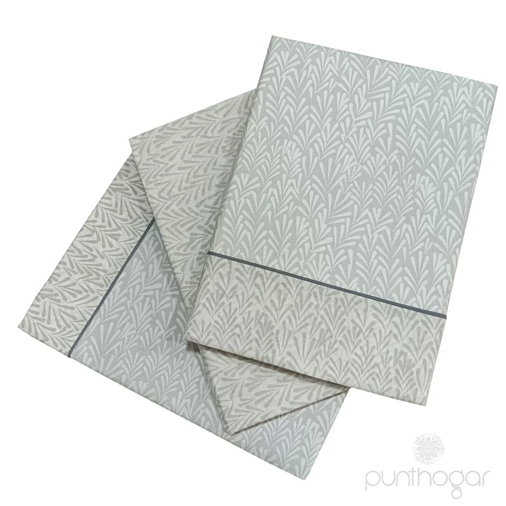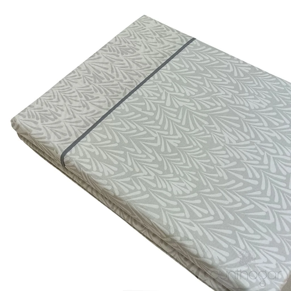 Inspirado en la naturaleza, su diseño presenta un patrón de hojas estilizadas que se entrelazan sutilmente sobre el fondo liso. Este estampado aporta frescura visual sin restar sobriedad ni elegancia. La encimera y la funda de almohada, las hojas son blancas con fondo a color. Por su parte, la bajera ajustable es de estampado opuesto. Un diseño perfecto para quienes buscan armonía y serenidad en el dormitorio.
