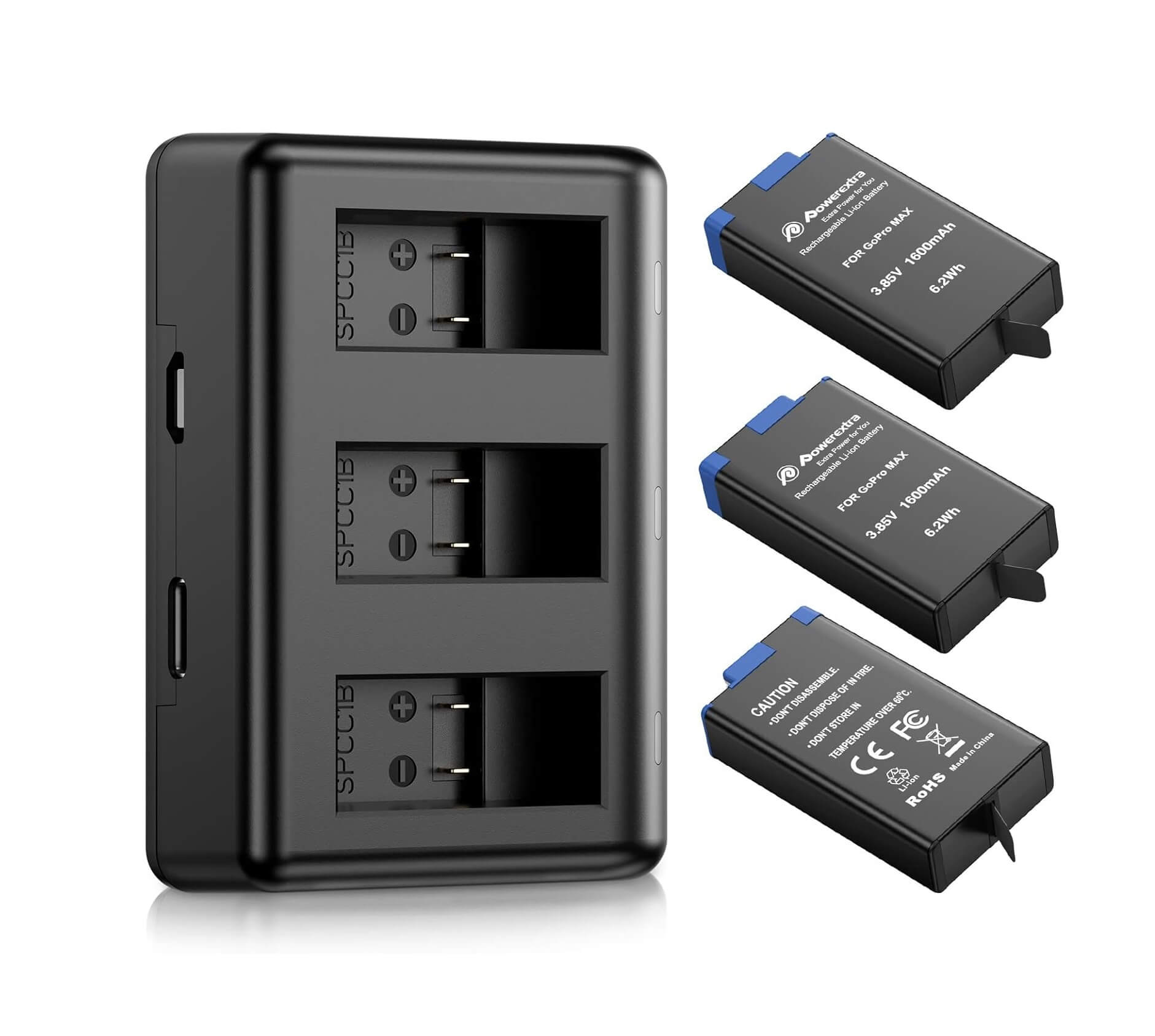 Kit de Baterías, Cada batería de 1600 mAh te permitirá capturar más momentos inolvidables durante tus aventuras. Gracias al cargador de 3 canales, podrás cargar las tres baterías de manera simultánea, ahorrando tiempo y asegurándote de que siempre estén listas.