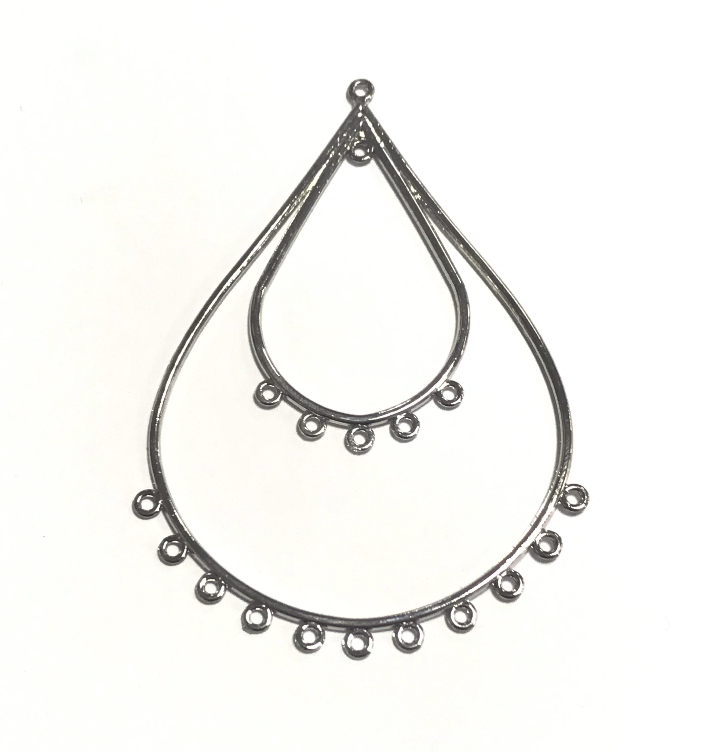 Lágrima metálica plateada con un tamaño de 80x55mm.