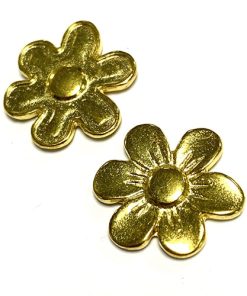 Lágrima metálica fabricada en peltre chapada en oro con unas medidas de 42x25mm