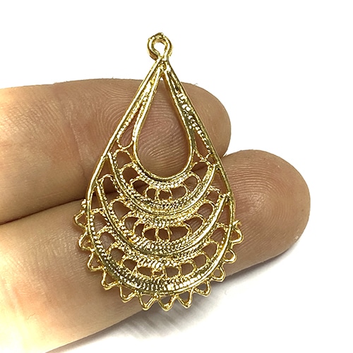 LÁGRIMA DE FILIGRANA 42x22MM ORO BRILLO
