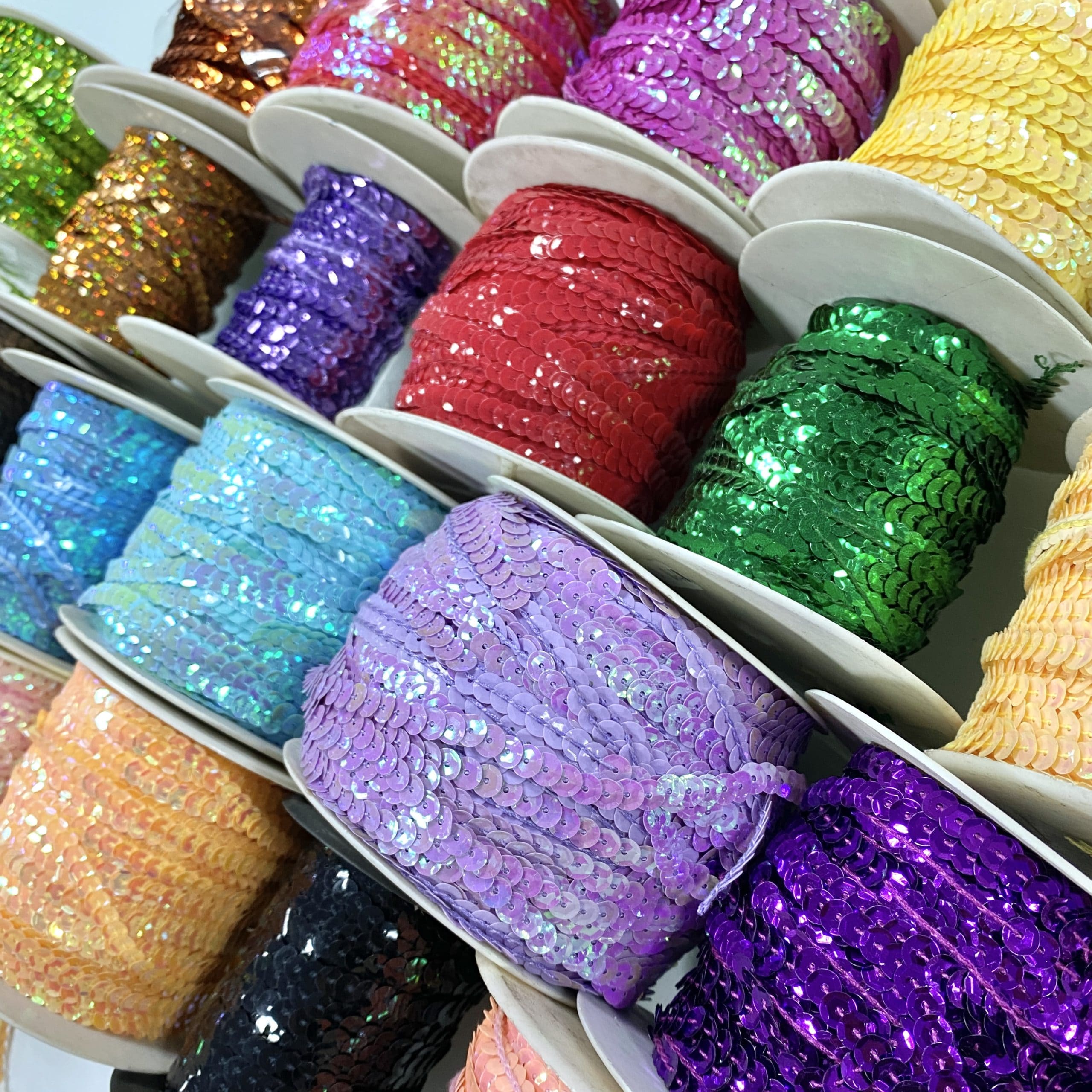 Tiras de lentejuelas metreadas disponibles en 25 colores.