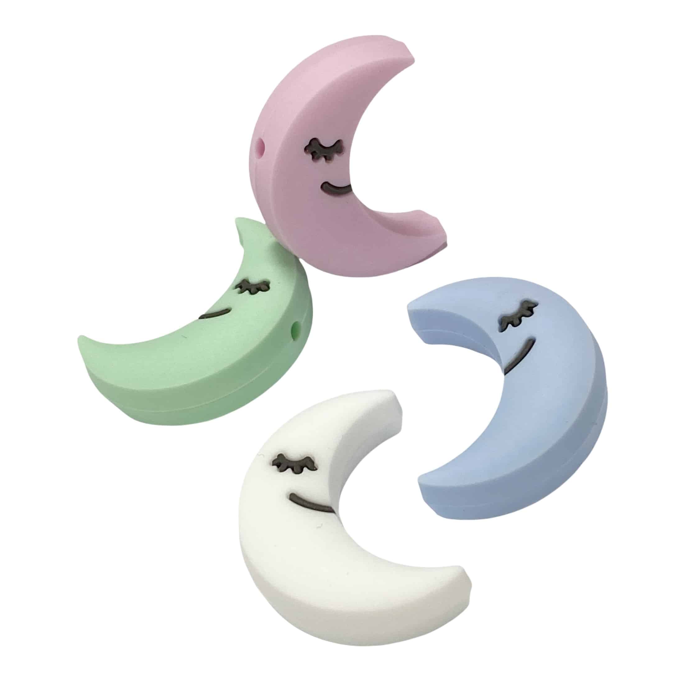 Abalorio con forma de luna de silicona ideal para la fabricación de chupeteros disponible en varios colores.