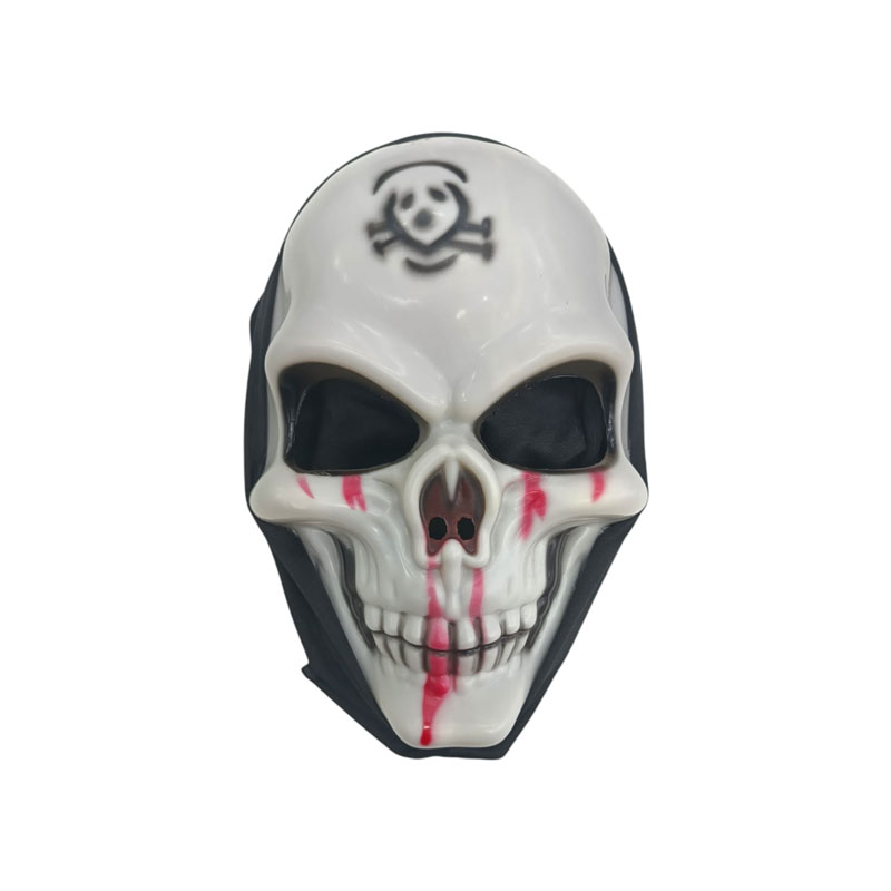 Mascara Rígido Cráneo – Esqueleto – Zombie Blanco con Sangre Roja y Capucha Negra