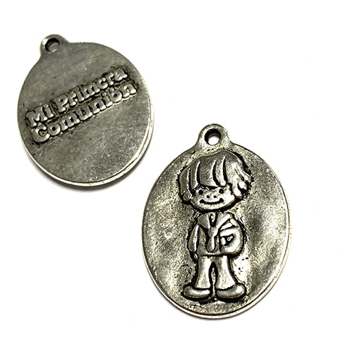 Medalla «mi primera comunión» con unas medidas de 25x18mm (anilla incluída) ideal para realizar un colgante o pulsera.