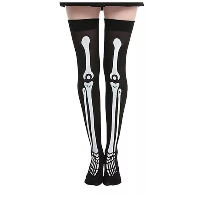 Media Bucaneras 7/8 Esqueleto Negras con Huesos Blancos Halloween 68cm