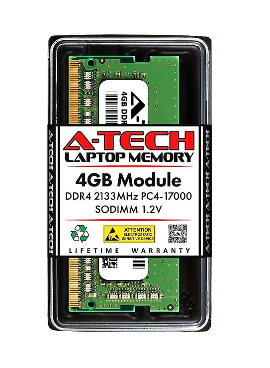 - Módulo de RAM único de 4 GB | DDR4 SO-DIMM 260 pines | Velocidades de hasta 2133 MHz, PC4-17000 / PC4-2133P