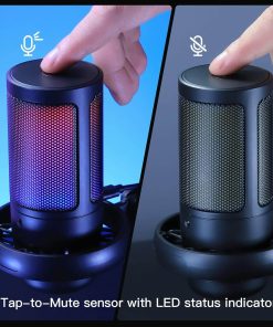 - Iluminación RGB colorida: el micrófono para juegos cuenta con impresionantes efectos de gradiente multicolor dinámicos para ayudar a que tus videos de juegos y transmisiones en vivo lleguen a más espectadores. La rica iluminación RGB del micrófono para juegos está integrada con coloridos accesorios de computadora para satisfacer las necesidades de un ambiente más de juego. Cuando el micrófono esté funcionando, mantén presionado el botón táctil en la parte superior del micrófono durante 3 segundos para encender/apagar la iluminación RGB.