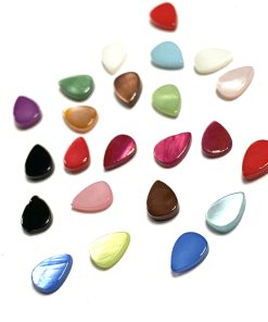 Abalorio dorado de nácar ovalado de 15mm con un pase en la parte superior para que nos sirva de colgante.