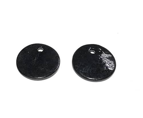 Nácar negra redonda con un diámetro de 12mm y con un pase para que nos sirva de colgante.